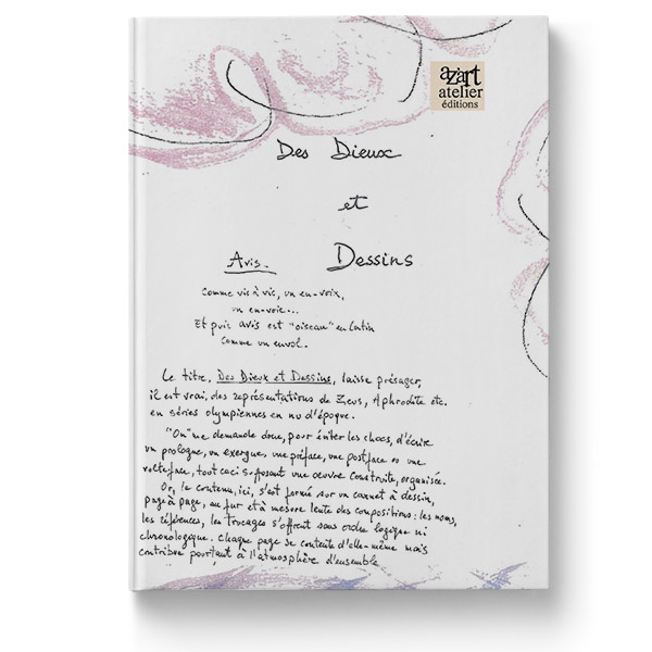 Le titre laisse présager des représentations de Zeus, Aphrodite, etc… en séries olympiennes, en nu d’époque, tout ceci supposant une œuvre construite, organisée. Or, ici, le contenu s’est formé sur un carnet à dessin, page à page, au fur et à mesure lente des compositions. Les noms, les références, les trucages s’offrent sans ordre logique ni chronologique.
