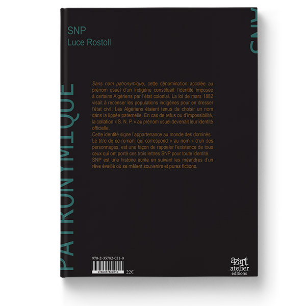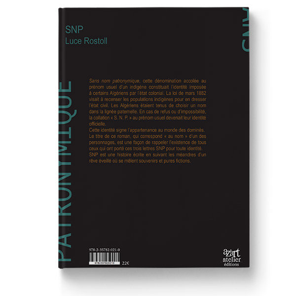 SNP*, Sans Nom Patronymique, est un roman qui se situe à la même période, et pour partie, au sein du petit hôpital communal. Relater les « Évènements » non plus avec le regard d’une enfant française mais avec celui, imaginé, d’un Algérien, d’une Algérienne, tel est le pari de cet écrit : un roman à deux voix, celles de deux laissés pour compte, deux « sans nom » qui vont se frayer un chemin dans le tumulte d’un pays déchiré.